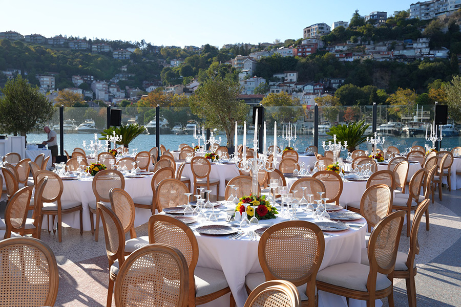 Galatasaray Adası’nın büyüleyici genişliğini ve doğal ihtişamını bir araya getiren “On The Sea”, nikah seremonileri için eşsiz bir sahne sunar. Boğazın ortasında, şehrin silüeti ve dalgaların zarif ritmi eşliğinde; tül detayları, özel kürsü tasarımı ve şık beyaz tiffany sandalyelerle kusursuz bir tören düzeni oluşturulur. Gün batımında, gökyüzünün altın tonları adayı sardığında, adeta bir film sahnesinin içinde “Evet” deme ayrıcalığını yaşarsınız.
